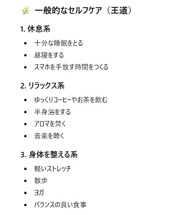 そもそもセルフケアって具体的にどういうことするのが一般的なの?